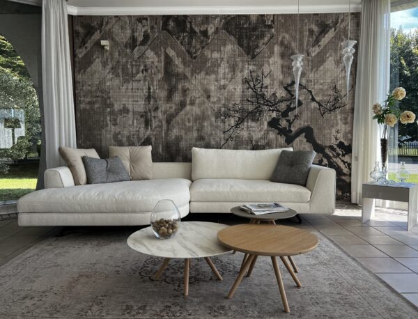 Divano Valentini modello Eduard New. Composizione divano con penisola . Struttura interna in legno con cuscini di seduta in piuma con inserto in espanso. Sono compresi nel prezzo i cuscinetti decorativi in foto. Il rivestimento in tessuto è completamente sfoderabile.